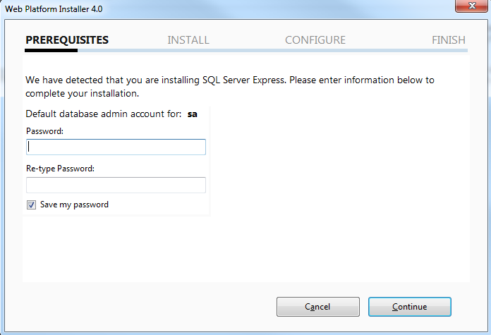 Ладно, жму Install. Просит пароль sa для SQL Server.