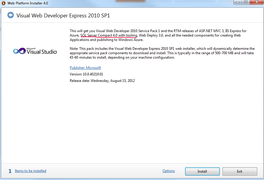 1. Установка Visual Wеb Developer 2010 Express.